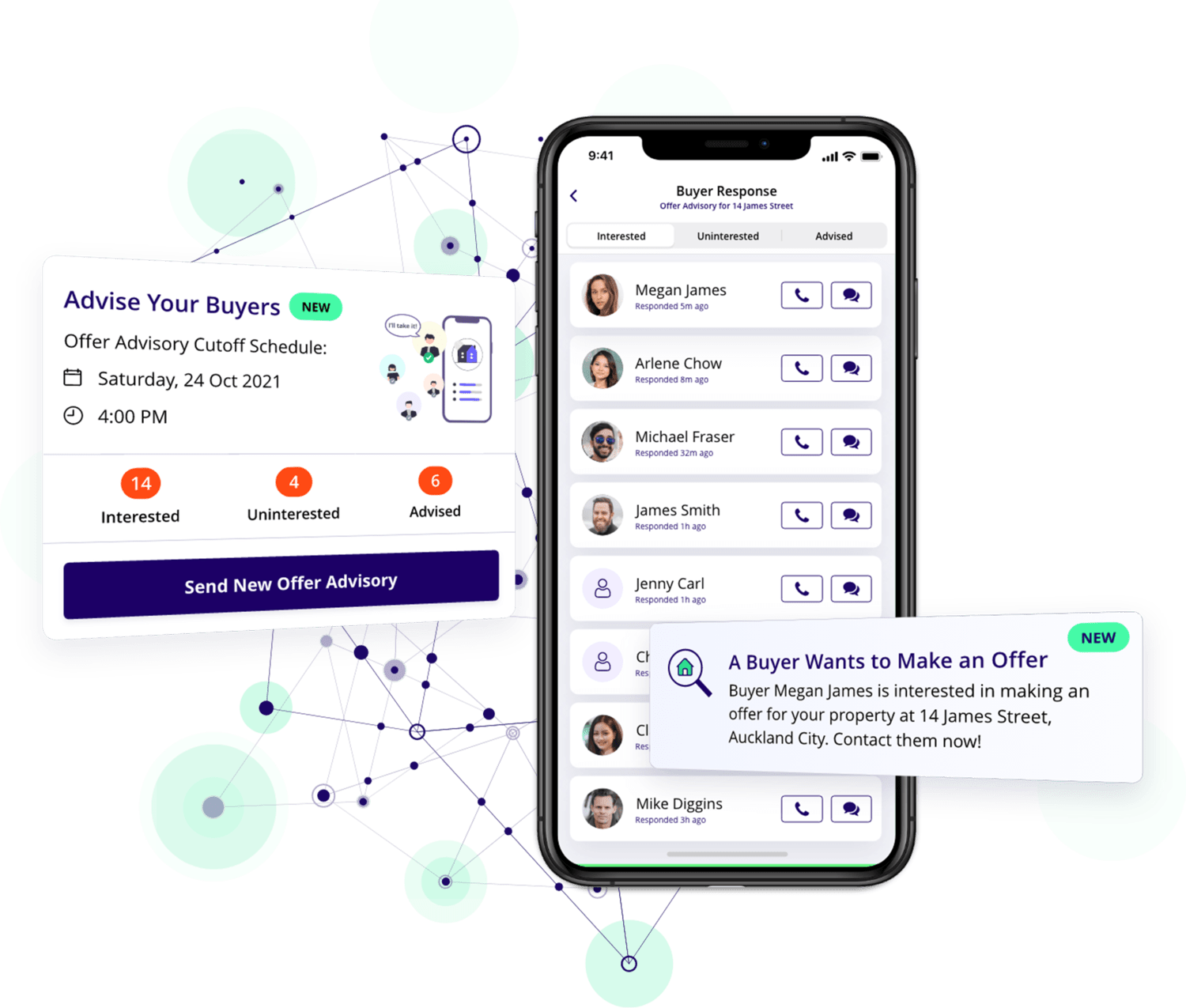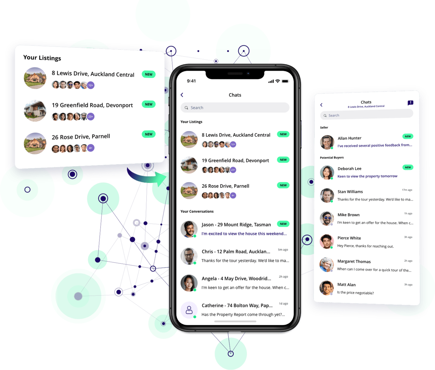 Prioritise customer service in your business. Our integrated communication tools bring all your conversations into a single, intuitive app. Notify potential buyers of changes in sale prices. Let your sellers know when offers have been submitted. Manage open home invitations via simple push notifications.