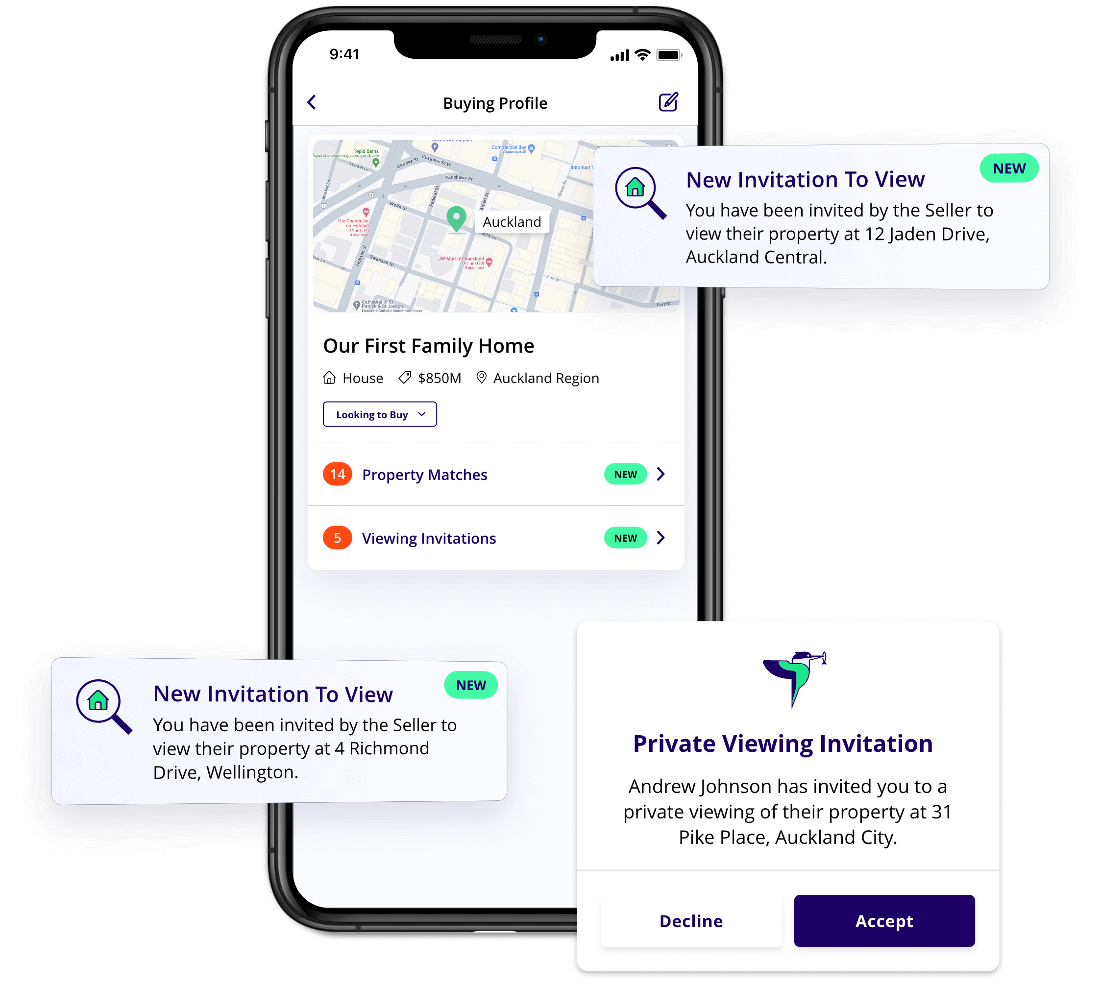 Get notifications you want to know about. Our app will tell you when a new property is added that matches your buyer profile, or when you receive an invitation to view a property.