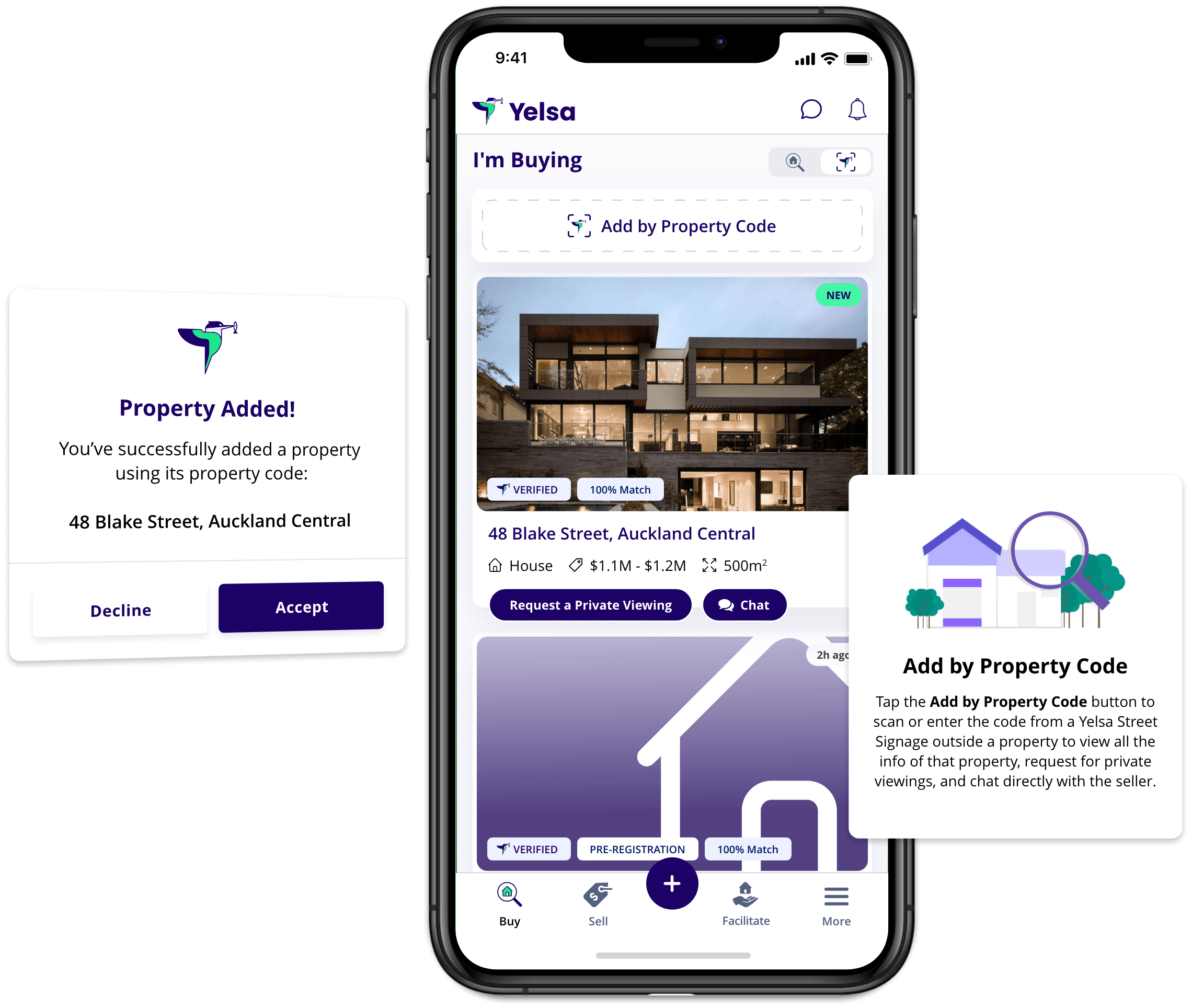 Combine multiple search tabs into a single app-based watch list. Our unique property code system gives you access to all available property information just by scanning a QR code or entering a word code into Yelsa. Receive real-time notifications for all properties on your watch list.